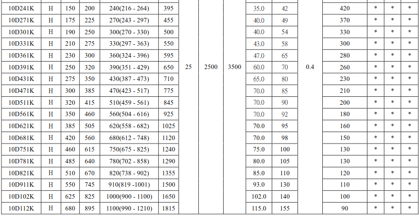 10D Series 10mm 471k Straight Lead Metal Oxide Varistor with High Voltage